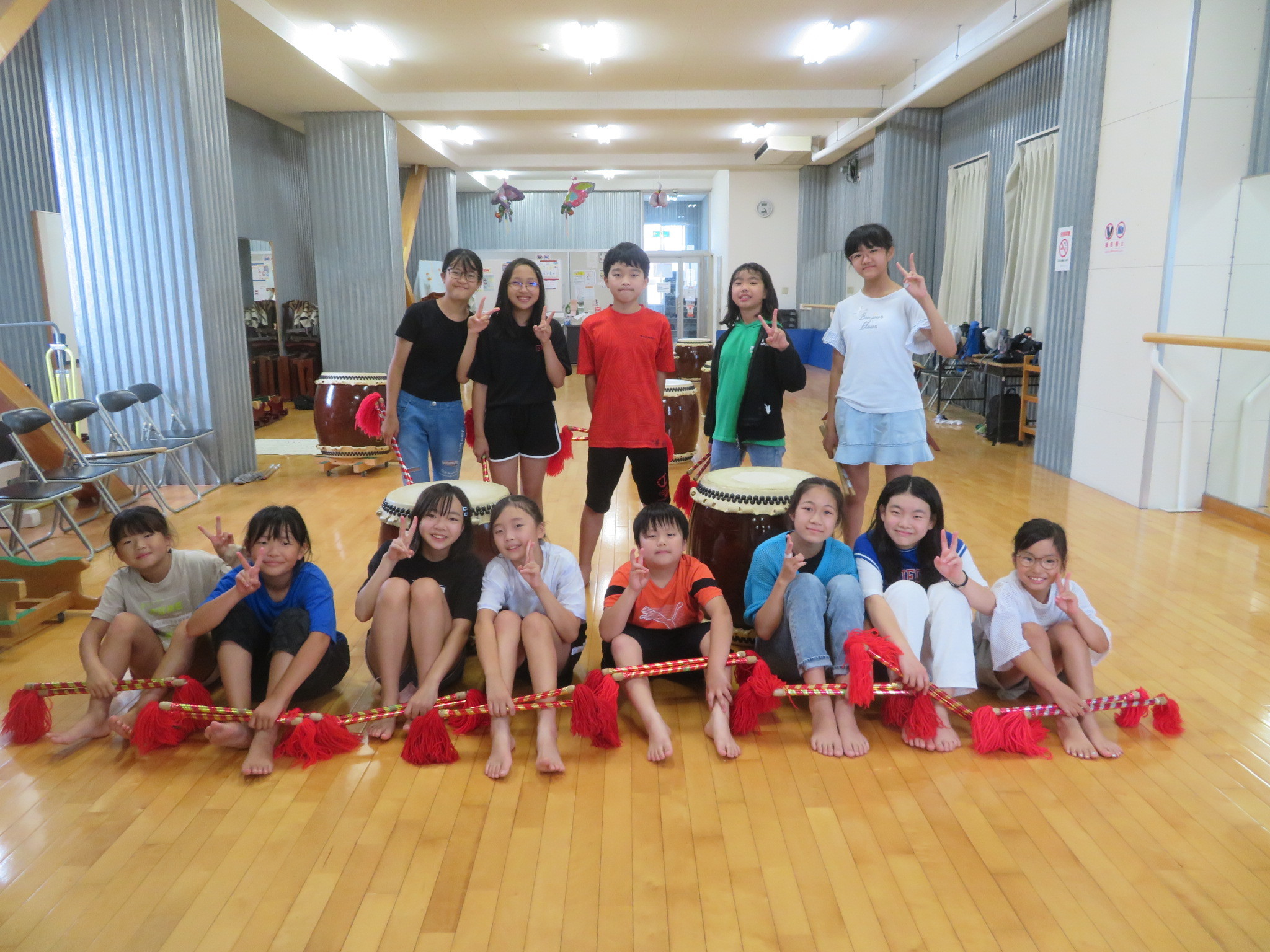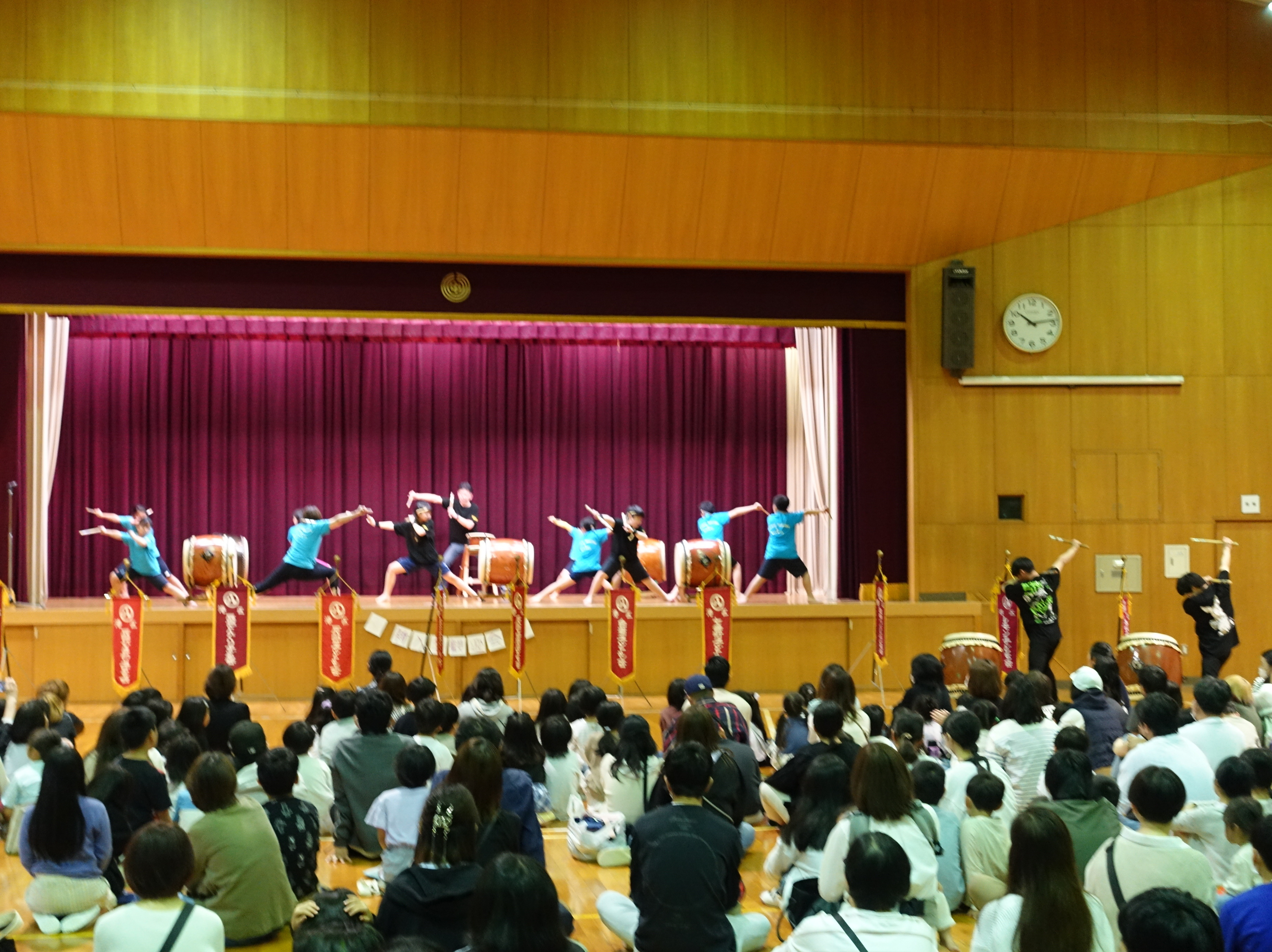 学区子ども会総会や盆踊り大会では和太鼓を披露しています。