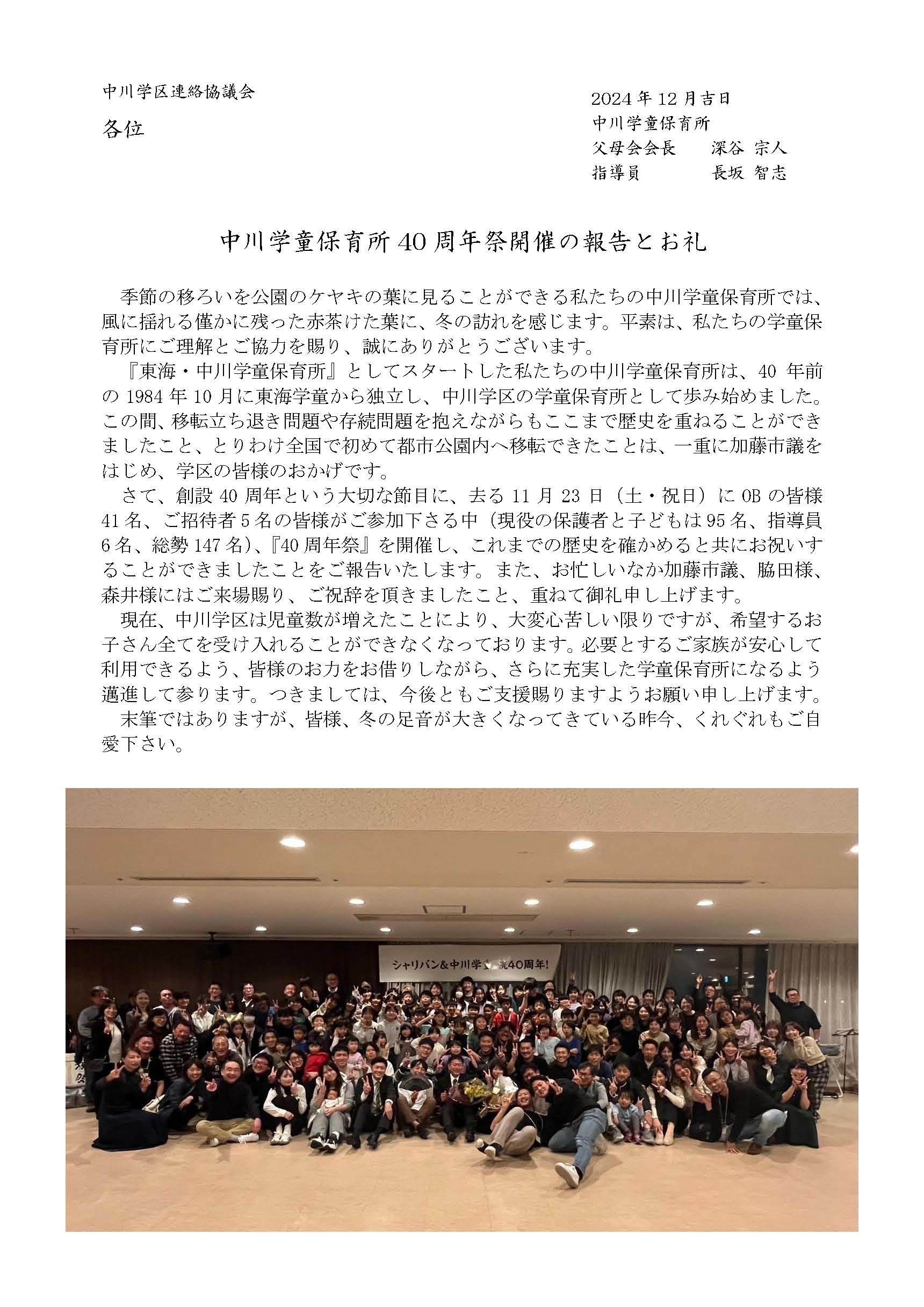 さぁ、今ここから!中川学童保育所、創設40周年!